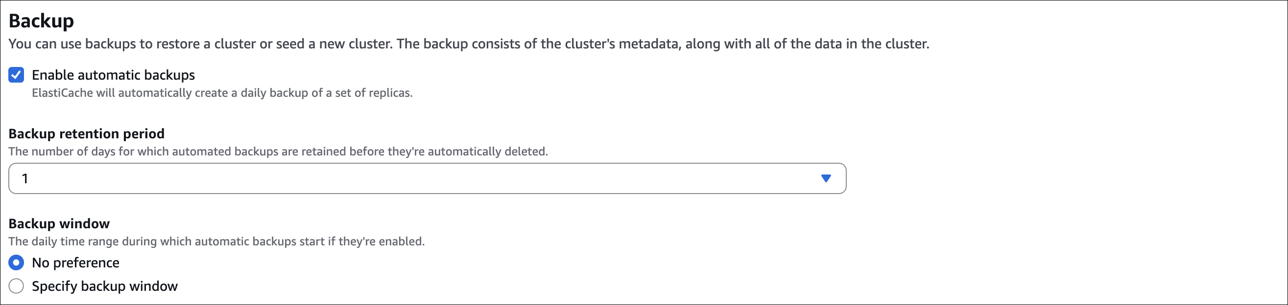 - Backup window: Choose time (e.g., 03:00-04:00 UTC)