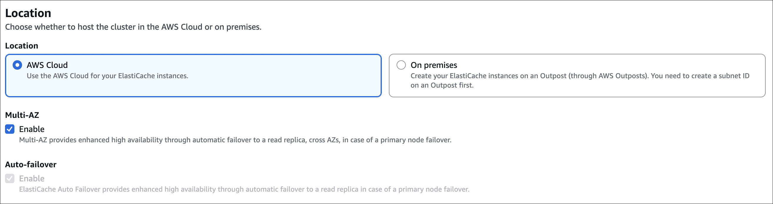 - AWS Cloud: Use AWS Cloud for ElastiCache instances (most common)